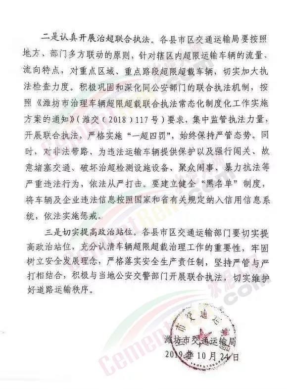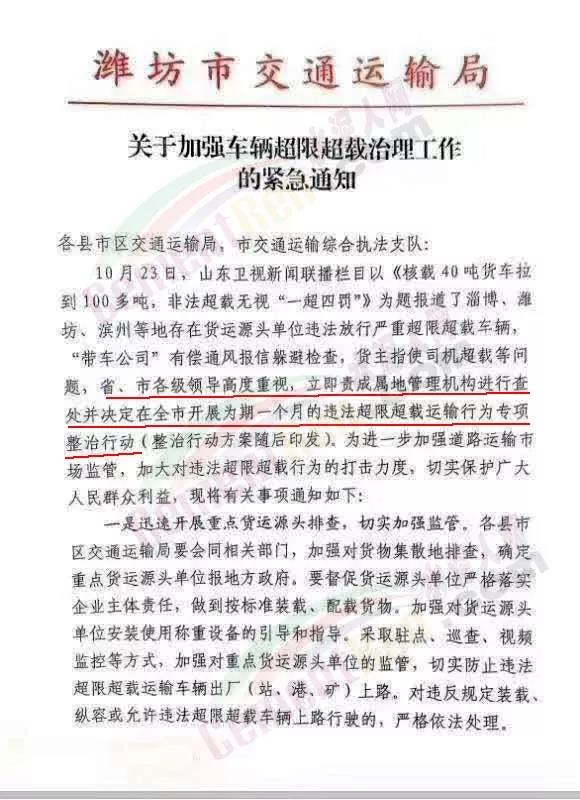 為進(jìn)一步加強(qiáng)道路運(yùn)輸市場監(jiān)管,加大對違法超限超載行為的打擊力度,切實(shí)保護(hù)廣大人民群眾利益,并將相關(guān)事項(xiàng)通知如下:一、迅速開展重點(diǎn)貨運(yùn)源頭排查,切實(shí)加強(qiáng)監(jiān)管各縣市區(qū)交通運(yùn)輸局要會同相關(guān)部門,加強(qiáng)對貨物集散地排查,確定重點(diǎn)貨運(yùn)源頭單位報(bào)地方政府,要督促貨運(yùn)源頭單位嚴(yán)格落實(shí)企業(yè)主體責(zé)任,做到按標(biāo)準(zhǔn)裝載、配載貨物。加強(qiáng)對貨運(yùn)源頭單位安裝使用稱重設(shè)備和引導(dǎo)和指導(dǎo)。采取駐點(diǎn)、巡查、視頻、監(jiān)控等方式,加強(qiáng)對重點(diǎn)貨運(yùn)源頭單位的監(jiān)管,切實(shí)防止違法超限超載運(yùn)輸車輛出廠(站、港、礦)上路。對違反規(guī)定裝載、縱容或允許違法超限超載車輛上路行駛的,嚴(yán)格依法處理。二、認(rèn)真開展治超聯(lián)合執(zhí)法各縣市區(qū)交通運(yùn)輸局要按照地方、部門多方聯(lián)動的原則,針對轄區(qū)內(nèi)超限運(yùn)輸車輛的流量,流向特別,對重點(diǎn)區(qū)域 、重點(diǎn)路段超限超載車輛,切實(shí)加大執(zhí)法檢查力度。積極鞏固和深化同公安部門的聯(lián)合執(zhí)法機(jī)制,按照《濰坊市治理車輛超限超載聯(lián)合執(zhí)法常態(tài)化制度化工作實(shí)施方案的通知》(濰交【2018】117號)要求,集中監(jiān)管執(zhí)法力量,開展聯(lián)合執(zhí)法,嚴(yán)格實(shí)施“一超四罰”,始終保持嚴(yán)管態(tài)勢。同時(shí),對非法帶路,為違法運(yùn)輸車輛提供保護(hù)以及強(qiáng)行闖關(guān)、故意堵塞交通、破壞治超檢測設(shè)施設(shè)備、聚眾門事、暴力抗法等嚴(yán)重違法行為,依法從嚴(yán)打擊。要建立健全“黑名單”制度,將車輛及企業(yè)違法信息按照國家和省有關(guān)規(guī)定納入信用信息系統(tǒng),依法實(shí)施懲戒。三、切實(shí)提高政治站位各縣市區(qū)交通運(yùn)輸部門要切實(shí)提高政治站位,充分認(rèn)清車國內(nèi)超限超載治理工作的重要性,牢固樹立安全發(fā)展理念,嚴(yán)格落實(shí)安全生產(chǎn)責(zé)任制,堅(jiān)持嚴(yán)管與嚴(yán)打相結(jié)合 ,積極與當(dāng)?shù)毓步痪块T開展聯(lián)合執(zhí)法,切實(shí)維護(hù)好道路運(yùn)輸秩序。通知原文如下: