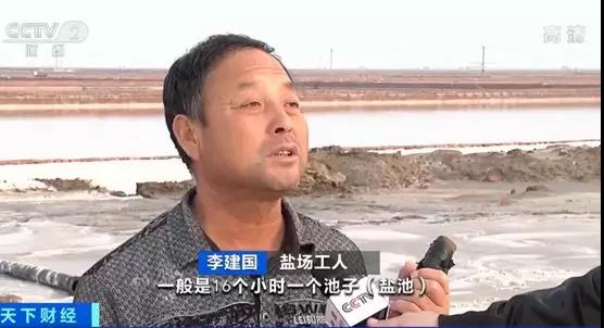 工人 李建國:一般是16個小時收一個池子(鹽池)。記者:一個鹽池能收多少噸鹽工人 李建國:像這樣能收600多噸,650噸左右。