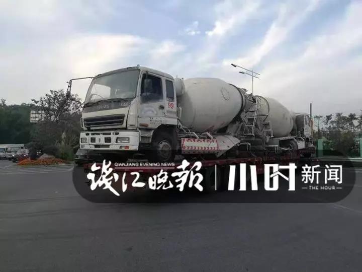 據(jù)了解,這4輛水泥攪拌車屬于同一公司所有,因業(yè)務(wù)需要,需轉(zhuǎn)移到其他城市,為節(jié)省運費,所屬公司想出“奇招”,將其放至半掛車,以“車背車”的方式拖運。(來源:錢江24小時)
