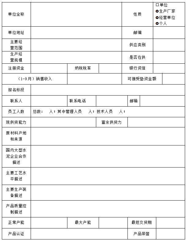 供應(yīng)商投標(biāo)報(bào)名申請(qǐng)表