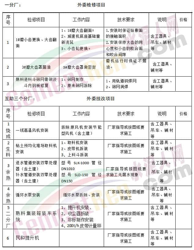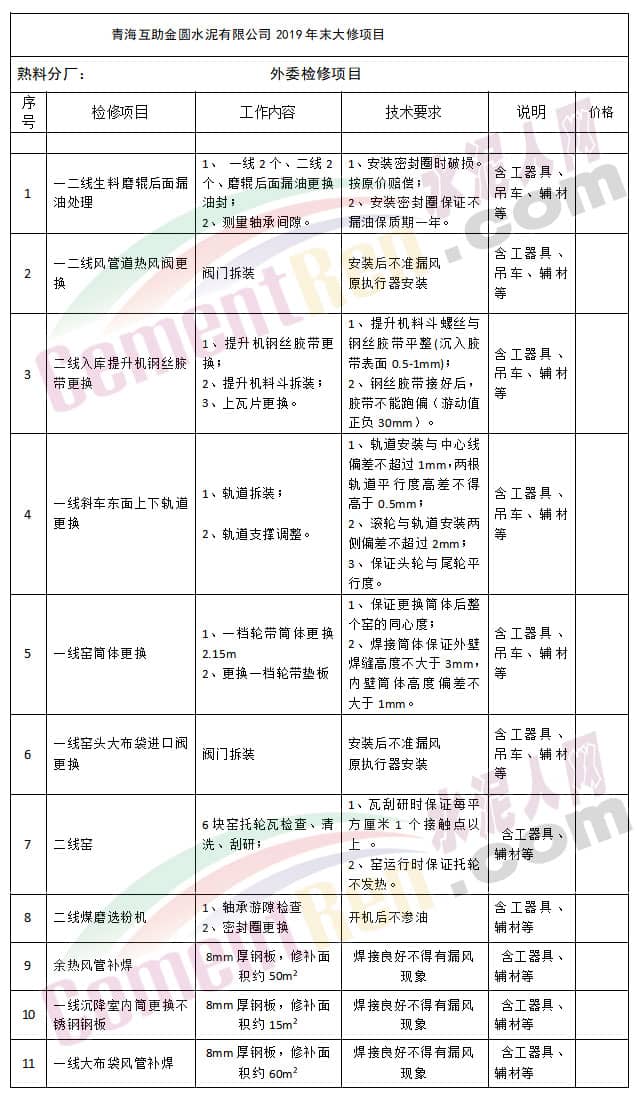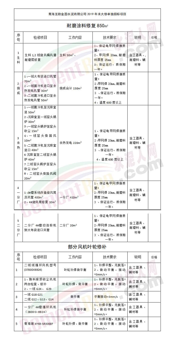 1、招標(biāo)項(xiàng)目:青海互助金圓水泥有限公司檢修、技改項(xiàng)目招標(biāo)。