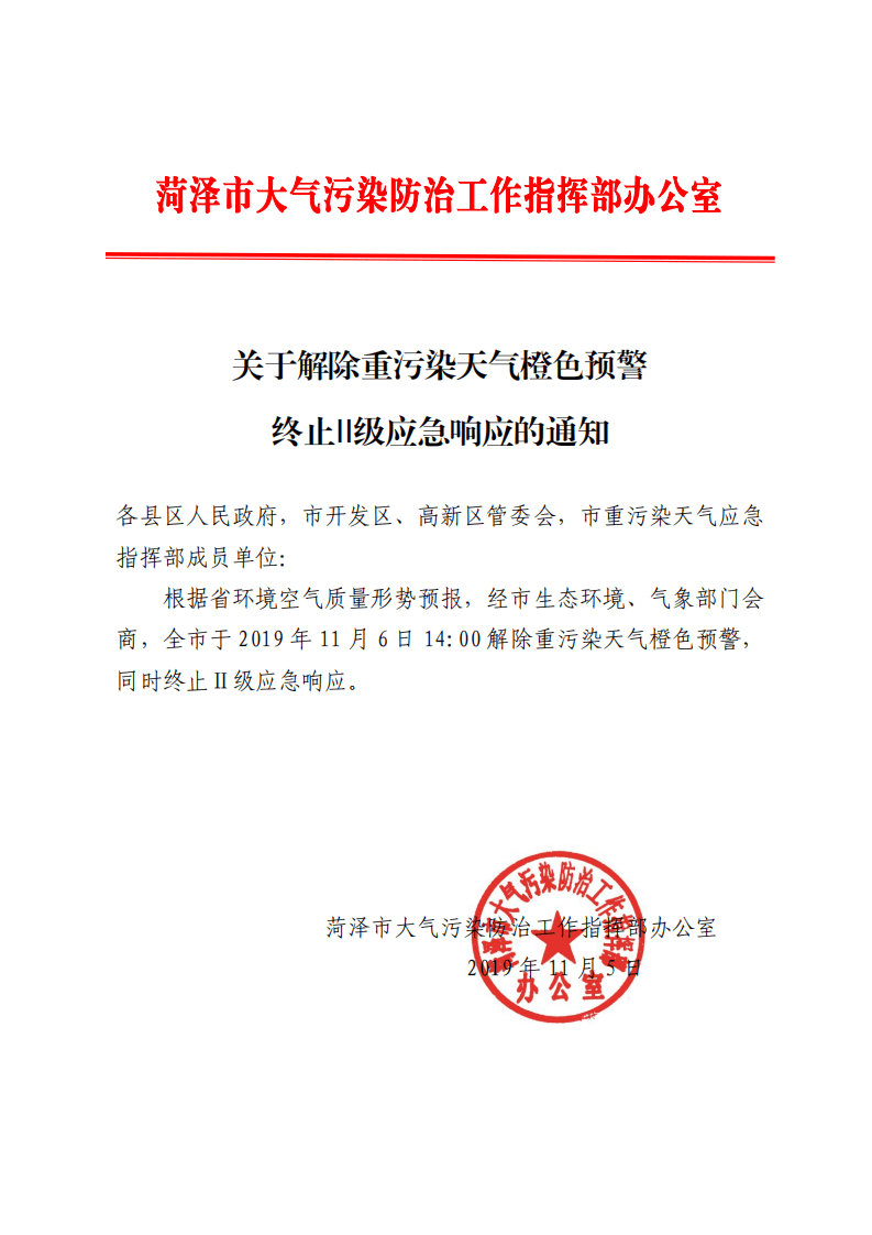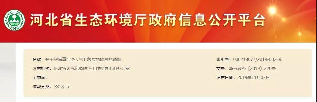 11月5日,河北省生態(tài)環(huán)境廳發(fā)布關(guān)于解除重污染天氣Ⅱ級應(yīng)急響應(yīng)的通知。按照《河北省重污染天氣應(yīng)急預(yù)案》要求,區(qū)域二城市(唐山、廊坊、滄州、秦皇島)于11月7日8時解除重污染天氣Ⅱ級應(yīng)急響應(yīng);區(qū)域一城市(石家莊、保定、衡水、邢臺、邯鄲、定州、辛集、雄安新區(qū))于11月10日8時解除重污染天氣Ⅱ級應(yīng)急響應(yīng)。