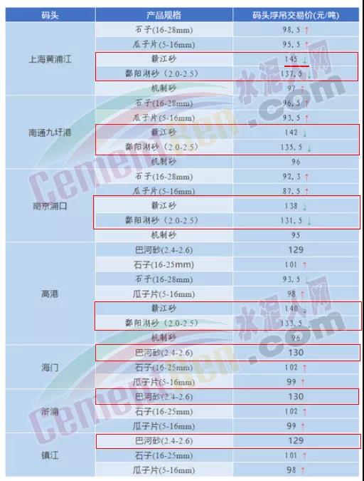 長(zhǎng)江部分港口江砂已經(jīng)超過(guò)了100元/噸,其中上海黃浦江贛江砂碼頭浮吊交易價(jià)達(dá)到145元/噸。
