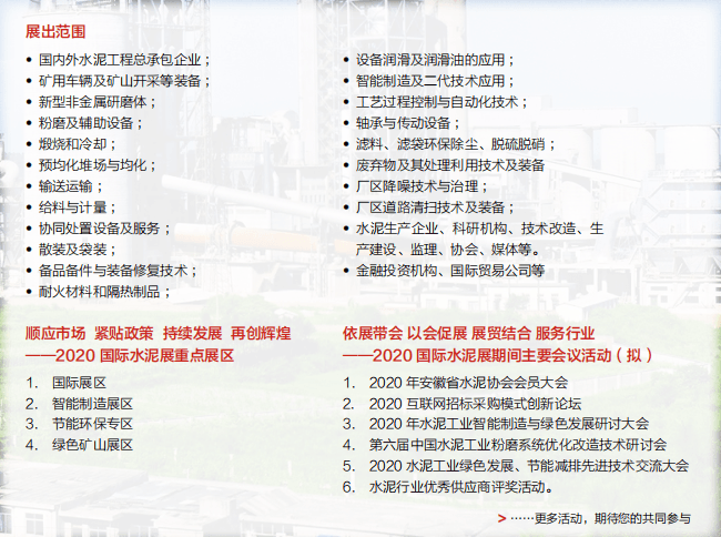 Cementtech(水泥展)作為行業(yè)內影響力最大的專業(yè)展,展出面積超過20000平方米,為國際水泥相關設備制造商和服務供應商提供客戶開發(fā)、渠道拓展和品牌宣傳維護等專業(yè)服務;憑借十余年的專業(yè)經(jīng)驗,水泥展已成為行業(yè)內最具影響力和號召力的服務貿(mào)易平臺!