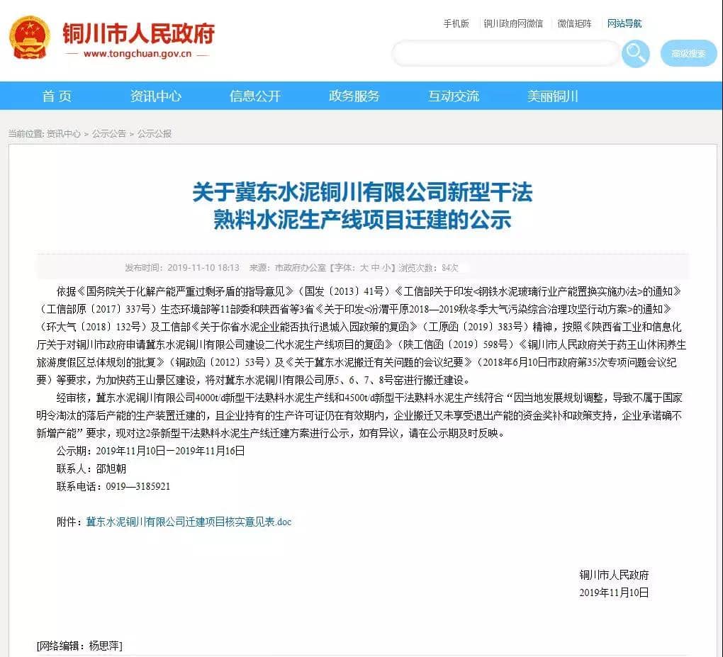 經(jīng)審核,冀東水泥銅川有限公司4000t/d新型干法熟料水泥生產(chǎn)線和4500t/d新型干法熟料水泥生產(chǎn)線符合“因當(dāng)?shù)匕l(fā)展規(guī)劃調(diào)整,導(dǎo)致不屬于國(guó)家明令淘汰的落后產(chǎn)能的生產(chǎn)裝置遷建的,且企業(yè)持有的生產(chǎn)許可證仍在有效期內(nèi),企業(yè)搬遷又未享受退出產(chǎn)能的資金獎(jiǎng)補(bǔ)和政策支持,企業(yè)承諾確不新增產(chǎn)能”要求。公示原文如下: