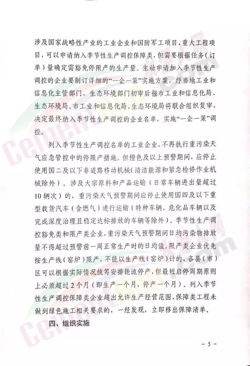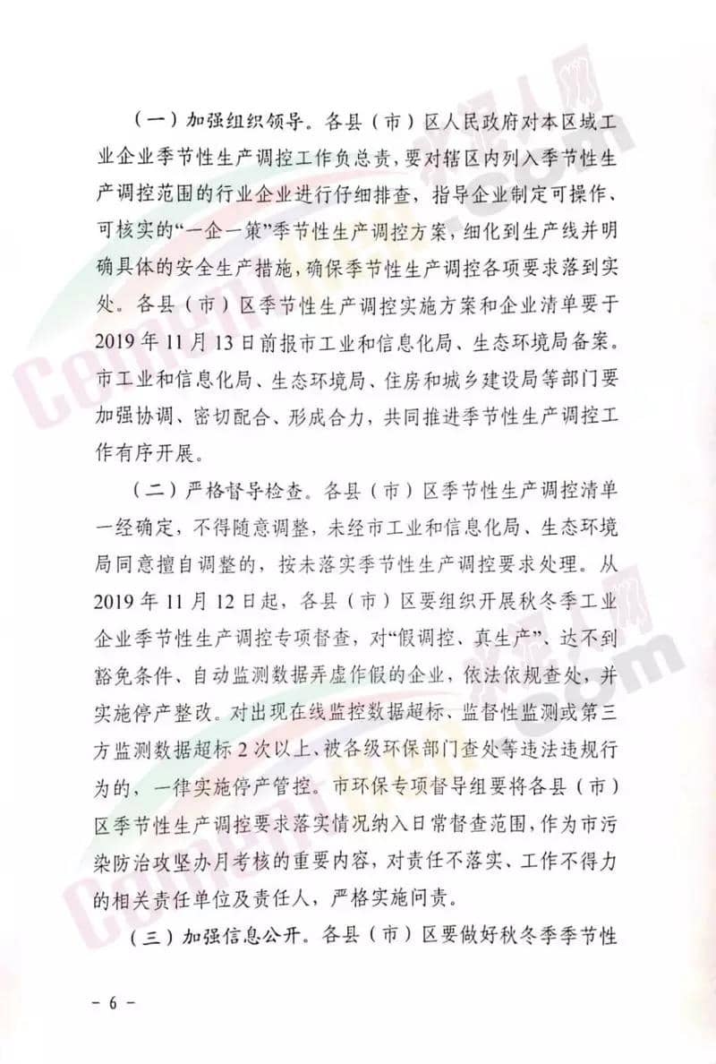 日前,焦作市污染物防治攻堅戰(zhàn)領導小組辦公室發(fā)布《關于印發(fā)焦作市 2019—2020 年秋冬季工業(yè)企業(yè)季節(jié)性生產(chǎn)調(diào)控指導意見的通知》。其中《焦作市 2019—2020 年秋冬季工業(yè)企業(yè)季節(jié)性生產(chǎn)調(diào)控指導意見的通知》要求水泥、磚瓦、有色等重點行業(yè),以據(jù)不同行業(yè),同一行業(yè)不同企業(yè)的污染排放績效水平,組織實施秋冬季工業(yè)企業(yè)季節(jié)性生產(chǎn) 調(diào)控,引導企業(yè)加快綠色轉(zhuǎn)變型升級,減少污染物排放,確保污染物減排量滿足秋冬季空氣質(zhì)量改善需求。實施時間:2019年11月12日0時至2020年3月31日24時季節(jié)性生產(chǎn)調(diào)控措施要求水泥行業(yè),按照《河南省污染防治攻堅戰(zhàn)領導小組辦公室關于印發(fā)2019-2020年秋冬季大氣污染防治攻堅重點任務的通知》要求,水泥行業(yè)(含特種水泥、不含粉磨站和粉磨工序)2019年11月1日至12月31日停窯,2020年1月份生產(chǎn),2020年2月1日至3月31日停窯。對于保障民生、保障城市 正常運轉(zhuǎn)、重點外貿(mào)出口、承擔居民供暖、協(xié)同處置城市垃圾和危險廢物等項目可以申請納入季節(jié)性生產(chǎn)調(diào)控保障類,但需要根據(jù)任務量確定需豁免停限產(chǎn)的生產(chǎn)量。通知原文如下: