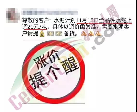 另外,隨著采暖季的到來,多區(qū)域水泥企業(yè)陸續(xù)進(jìn)入秋冬季停窯限產(chǎn)期。昨日山西區(qū)域多家企業(yè)通知由于原材料價(jià)格上漲,企業(yè)經(jīng)營(yíng)成本大幅增加,為了維持企業(yè)正常的生產(chǎn)經(jīng)營(yíng)上調(diào)水泥價(jià)格。