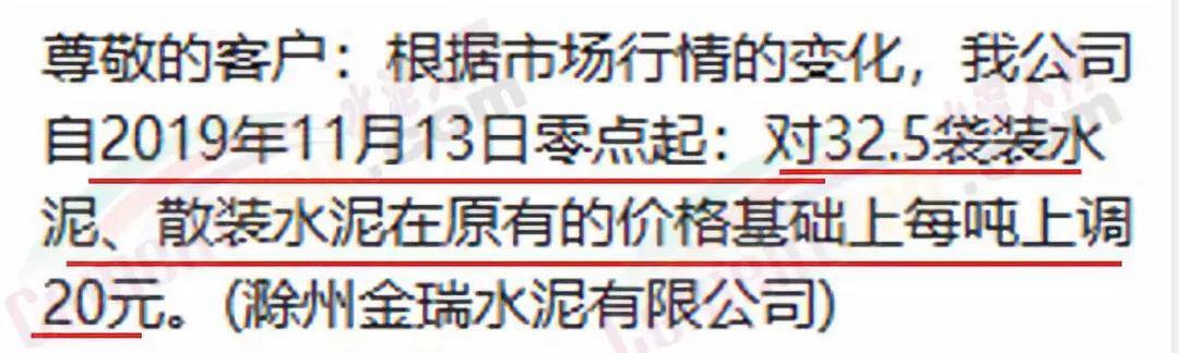 安徽滁州金瑞水泥有限公司通知32.5袋裝、散裝水泥上調(diào)20元/噸。