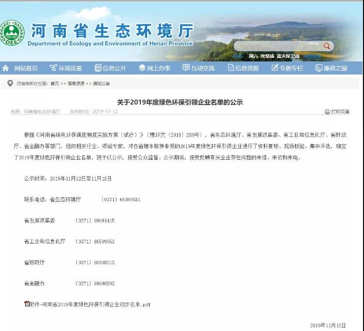 河南省2019年度綠色環(huán)保引領(lǐng)企業(yè)名單
