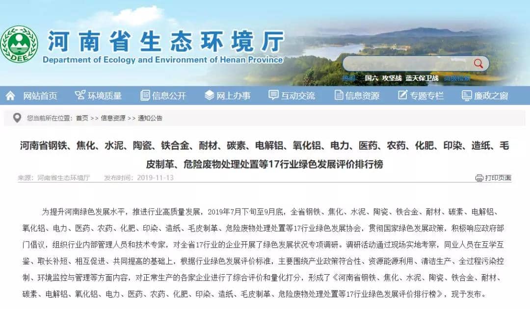 日前,河南省生態(tài)環(huán)境廳發(fā)布《關(guān)于2019年度綠色環(huán)保引領(lǐng)企業(yè)名單的公示》稱:根據(jù)《河南省綠色環(huán)保調(diào)度制度實(shí)施方案(試行)》(豫環(huán)文〔2018〕280號(hào)),省生態(tài)環(huán)境廳、省發(fā)展改革委、省工業(yè)和信息化廳、省財(cái)政廳、省金融辦等部門(mén),組織相關(guān)行業(yè)、領(lǐng)域?qū)<遥瑢?duì)各省轄市推薦申報(bào)的2019年度綠色環(huán)保引領(lǐng)企業(yè)進(jìn)行了資料復(fù)核、現(xiàn)場(chǎng)核驗(yàn)、集中評(píng)選,確定了2019年度綠色環(huán)保引領(lǐng)企業(yè)名單,并予以公示, 接受公眾監(jiān)督。公示期間,接受反映有關(guān)企業(yè)存在問(wèn)題的來(lái)信、來(lái)訪和來(lái)電。公示時(shí)間:2019年11月12日至11月18日。詳情如下: