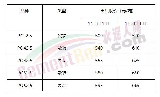 更有甚者,河南錦榮水泥有限公司自10月31日起連漲6次,累計(jì)漲價(jià)達(dá)170元/噸。