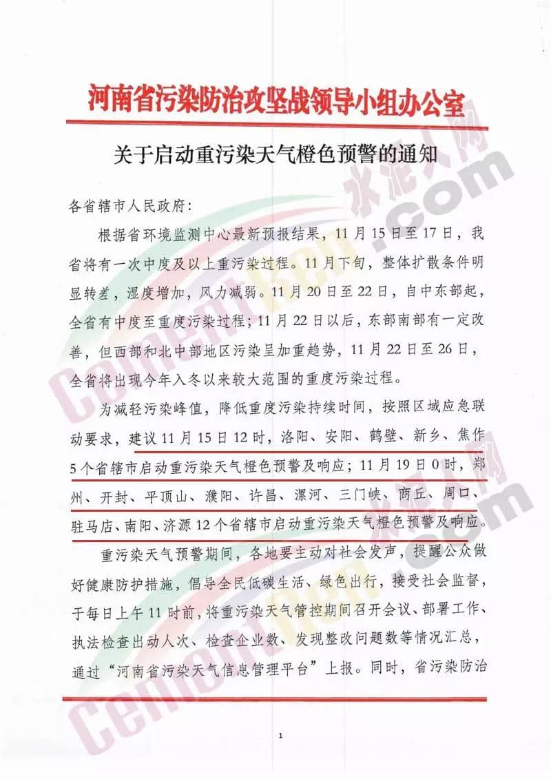 據(jù)了解,昨日(11月14日),河南省人民政府發(fā)布《關(guān)于印發(fā)河南省重污染天氣應(yīng)急預(yù)案的通知》稱:當預(yù)測可能出現(xiàn)上述重污染天氣時,應(yīng)當按空氣質(zhì)量預(yù)報結(jié)果上限確定預(yù)警級別。當全省6個及以上相鄰的省轄市(濟源產(chǎn)城融合示范區(qū))同時達到橙色或紅色預(yù)警條件時,啟動該級別的省級預(yù)警。當發(fā)布橙色預(yù)警時,啟動Ⅱ級應(yīng)急響應(yīng)。根據(jù)減排需要,在橙色及以上預(yù)警期間采取統(tǒng)一應(yīng)急減排措施。對新興產(chǎn)業(yè)、戰(zhàn)略性產(chǎn)業(yè)和保障民生的企業(yè),應(yīng)當根據(jù)實際情況采取減排措施,盡量避免對正常生產(chǎn)生活的影響。對承擔協(xié)同處置城市生活垃圾或危險廢物、涉及居民供暖等民生保障類企業(yè),在保障任務(wù)完成的同時,核定最大允許生產(chǎn)負荷,實施“以量定產(chǎn)”或“以熱定產(chǎn)”。