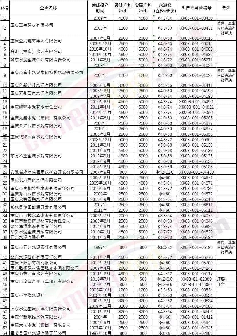 水泥人網(wǎng)消息:日前,重慶市經(jīng)信委發(fā)布了最新版《重慶市水泥熟料生產(chǎn)線(xiàn)清單》。