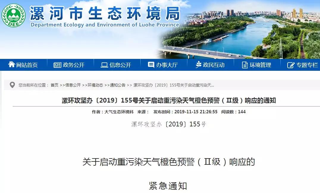 與此同時,為應對重污染天氣,洛陽、安陽、鶴壁、新鄉(xiāng)、焦作5個省轄市11月15日12時啟動重污染天氣橙色預警及響應,鄭州、開封、平頂山、濮陽、許昌、漯河、三門峽、商丘、周口、駐馬店、南陽、濟源12個省轄市11月19日0時啟動重污染天氣橙色預警及響應。以上地區(qū)要對省污染防治攻堅辦每日通報的污染物排放量和用電量異常企業(yè)進行重點核查,保證各項應急管控措施落實到位,并加大對企業(yè)“一廠一策”落實情況、重型貨車及非道路移動機械停運管理、施工工地停工情況的督查力度。