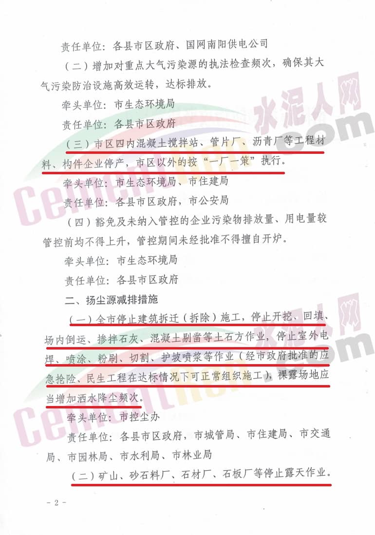 11月18日河南省南陽市相繼發(fā)布了《關(guān)于啟動重污染天氣二級(橙色)預(yù)警響應(yīng)的通知》稱根據(jù)省污染防治攻堅辦對近期的環(huán)境空氣質(zhì)量預(yù)測預(yù)判,預(yù)計11月20日至22日南陽市將經(jīng)理一次污染過程,根據(jù)省聯(lián)防控要求,經(jīng)市污染防控攻堅辦研究,決定自11月19日0時啟動重污染天氣二級應(yīng)急響應(yīng),具體減排措施如下: