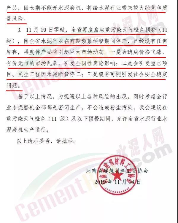 以許昌市為例,當(dāng)?shù)匚廴痉乐喂?jiān)戰(zhàn)領(lǐng)導(dǎo)小組通知 自11月19日0時(shí)啟動(dòng)重污染天氣橙色,實(shí)施II級(jí)應(yīng)急響應(yīng)措施。停產(chǎn)類企業(yè)包括水泥熟料企業(yè)(經(jīng)批準(zhǔn)協(xié)同處置,危廢、污泥等涉及民生的熟料生產(chǎn)線11月19日0時(shí)停產(chǎn)到位)、水泥粉磨企業(yè)、礦渣微粉企業(yè)、水泥制品企業(yè),商砼企業(yè)等。