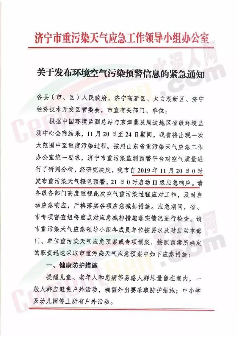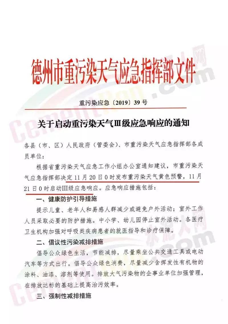 以河北省的“水泥窩”唐山市為例,當(dāng)?shù)卣?1月19日發(fā)布了《關(guān)于啟動(dòng)重污染天氣Ⅱ級(jí)應(yīng)急響應(yīng)的通知》稱自2019年11月19日20時(shí),全市啟動(dòng)重污染天氣Ⅱ級(jí)應(yīng)急響應(yīng)。
