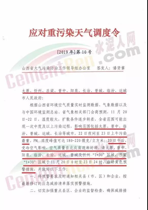 長(zhǎng)治市重污染天氣應(yīng)急指按部辦公室通知文件要求自11月20日0時(shí)開始全市啟動(dòng)重污染天氣黃色(III級(jí))預(yù)警,要求水泥、建材行業(yè)停產(chǎn)。