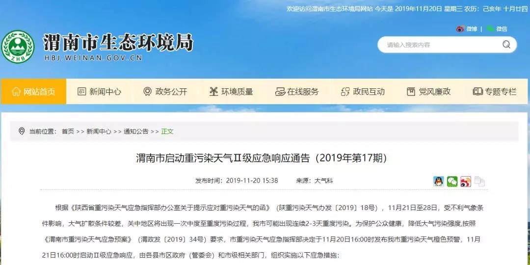 陜西省西安市重污染天氣應(yīng)急指揮部辦公室11月20日發(fā)布重污染天氣橙色預(yù)警,從2019年11月20日16時(shí)起啟動(dòng)Ⅱ級(jí)應(yīng)急響應(yīng)。