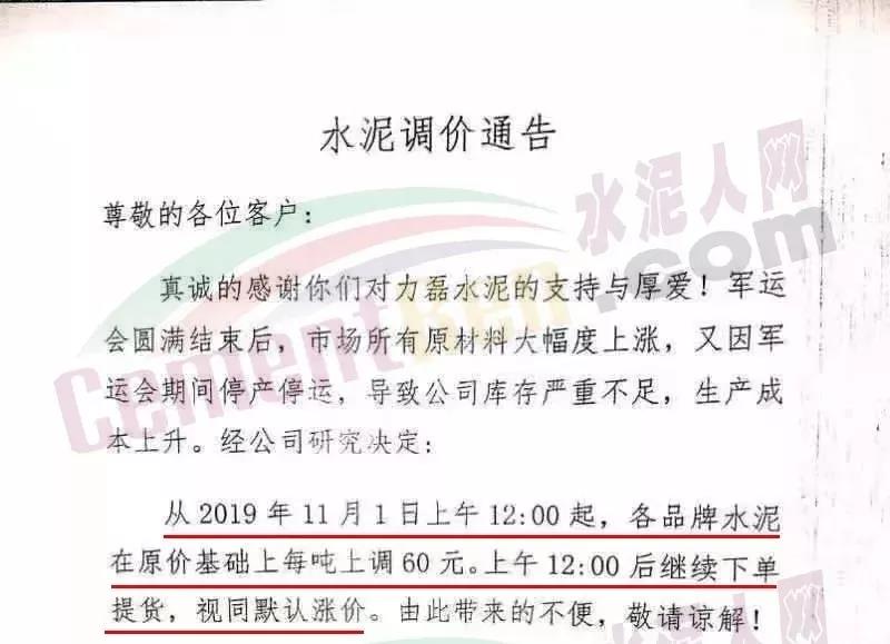 錦榮水泥自10月31日以來水泥價格連續(xù)上漲11次,其中從11月10日到11月18日,9天時間該企業(yè)連發(fā)了9張調價函。經過11輪上漲,該企業(yè)P.O42.5水泥累計漲價高達300元/噸,目前P.O42.5散裝含票出廠價高達680元/噸,加上運費到位核心區(qū)域價格已突破700元/噸。 河南三門峽市澠池仰韶水泥廠自11月8日起連發(fā)三份漲價函,截止11月13日,澠池仰韶水泥42.5級散裝水泥出廠價為610元/噸,52.5級散裝水泥出廠價為710元/噸。近期河南區(qū)域水泥價格又出現(xiàn)持續(xù)暴跌現(xiàn)象,兩天就跌了150元/噸,而且近期還在向下調整,跌價空間幾乎把之前的漲幅全部抹平。這種大漲大跌的市場環(huán)境,是極為不正常的。福建區(qū)域粉磨站“沒米了”,漲30元/噸福建區(qū)域熟料供應緊張,部分粉磨站企業(yè)通知無水泥可賣。某水泥粉磨企業(yè)負責人對水泥人網表示:“沒米了!” 福建區(qū)域企業(yè),一直都是從廣東及廣西采購熟料,近來枯水加上治超,熟料到位價格上漲。福建區(qū)域多家企業(yè)便隨之上調水泥價格,上調幅度30元/噸。天津漲價,拉開了京津冀區(qū)域的漲價的序幕21日區(qū)域主導企業(yè)集體上調水泥價格。北京金隅水泥經貿有限公司天津分公司發(fā)調價通知,由于目前企業(yè)受環(huán)保錯峰、道路運輸治理等因素的影響,導致企業(yè)水泥庫存較低;同時,礦粉等原材料價格持續(xù)走高、京津冀東地區(qū)環(huán)保力度加大,環(huán)保投入增加,水泥生產成本大幅上漲。企業(yè)自11月21日8時起,PO42.5及以上規(guī)格散裝水泥產品出廠價格在原價格基礎上上調20元/噸。 陜西是兩輪漲價,共漲60元/噸,遭遇河南水泥車“搶購”本月15日前后陜西關中地區(qū)冀東,聲威,堯柏等多家主導企業(yè)通知上調水泥價格,漲幅30元/噸。18日前后大批河南水泥運輸車到陜西關中區(qū)域調運水泥,令區(qū)域內庫存減少,部分企業(yè)再次上調30元/噸。一片漲勢之中唯貴州區(qū)域遭遇“寒冬”,水泥價格低到200元以下,甚至有局部區(qū)域出廠價 180元/噸左右。1200元~180元,1020元的差價,是水泥行業(yè)冰火兩重天的現(xiàn)狀。目前的水泥價格似乎已處在了“失控”邊緣。部分企業(yè)又開啟了大票模式,在今年斷供后又開售2020年的水泥期貨。與上年相比,華東上海周邊區(qū)域似乎較平靜。上年末,華東區(qū)域水泥價高,下游競價銷售,出現(xiàn)千元左右一噸的水泥。后隨著華南廣西區(qū)域熟料和水泥到位,價格才逐步趨于平穩(wěn)。今年1季度下游施工企業(yè)提前備貨,也為今年華東區(qū)域的市場穩(wěn)定提前做了“鋪墊”。另據(jù)消息稱,華東沿海區(qū)域今年以來一直有大企業(yè)采購進口熟料到港,區(qū)域內熟料供應平穩(wěn),繼而水泥價格也處于穩(wěn)中有漲態(tài)勢。
