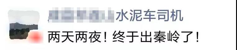 11月26下午14時左右,某水泥運費司機發(fā)朋友圈稱,兩天兩夜終于出了秦嶺。