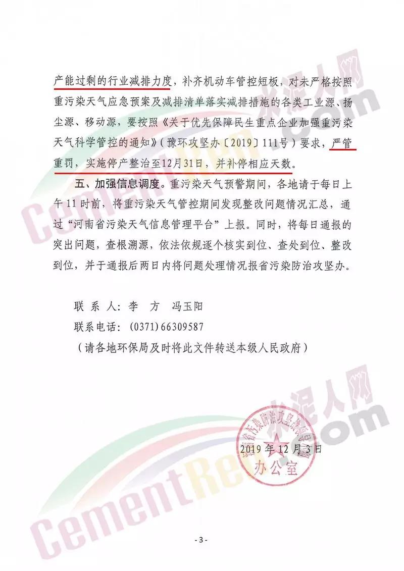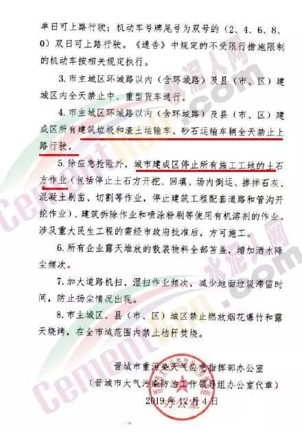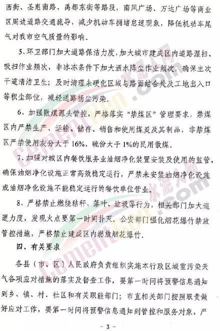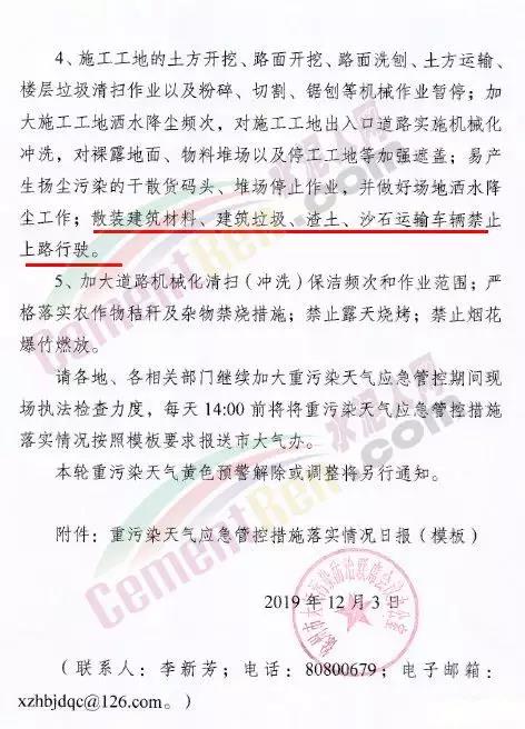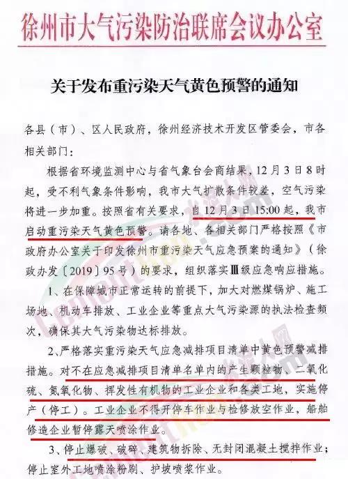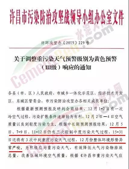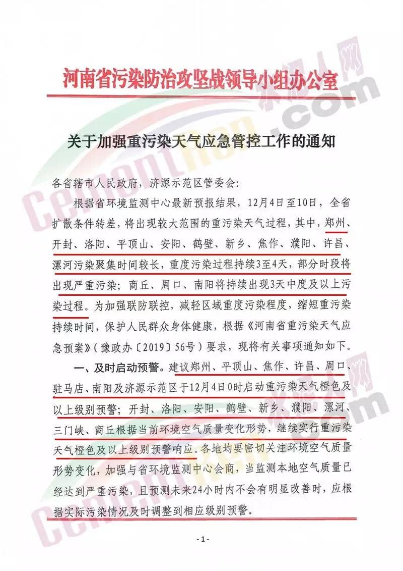 據(jù)了解河南洛陽市已于 12月4 日 12 時起啟動了重污染天氣紅色(I 級)預(yù)警響應(yīng)。預(yù)警響應(yīng)期間,要求,全市鋼鐵、焦化、氧化鋁、電解鋁等15個實(shí)施績效分級減排的企業(yè),應(yīng)嚴(yán)格落實(shí)紅色預(yù)警下的減排措施。對應(yīng)進(jìn)未進(jìn)應(yīng)急減排清單的涉氣企業(yè),自發(fā)現(xiàn)之日起至2020年3月底禁止生產(chǎn)。預(yù)警響應(yīng)期間,除了經(jīng)過審批的民生工程和搶險救災(zāi)工程在全面做好污染防治措施的情況下準(zhǔn)許施工(土石方作業(yè)停止)外,全市其他各類施工工地嚴(yán)格落實(shí)。停止土石方、渣土清運(yùn)、建筑拆除、混凝土 攪拌及澆筑作業(yè)。所有露天礦山開采企業(yè)在紅色預(yù)警期間停產(chǎn)。按照洛陽市大氣污染防治“百日攻堅行動”要求,城市區(qū)內(nèi)重型貨車原則上禁止通行,所有重型貨車?yán)@行至連霍高速、二廣高速和西南環(huán)城高速公路。確需進(jìn)入城市區(qū)運(yùn)輸?shù)?,?jīng)市公安部門審批后,在嚴(yán)格控制車輛排放標(biāo)準(zhǔn)、限制數(shù)量的前提下,按照規(guī)定路線和規(guī)定時間行駛。全市工業(yè)、駕校、鐵路貨場、物流運(yùn)輸?shù)绕髽I(yè)在紅色預(yù)警期間嚴(yán)格落實(shí)國Ⅳ及以下排放標(biāo)準(zhǔn)的重型貨運(yùn)車輛停止使用。城市規(guī)劃區(qū)范圍內(nèi)工業(yè)企業(yè)、建筑工地停止使用非道路移動機(jī)械(搶險救災(zāi)及保障城市運(yùn)轉(zhuǎn)使用達(dá)標(biāo)排放的除外)。焦作市污染防治攻堅辦通知,自2019年12月4日0時起,啟動重污染天氣橙色(Ⅱ級)預(yù)警,解除時間另行通知。許昌市啟動重污染天氣橙色(Ⅱ級)預(yù)警。預(yù)警通知提到12月5日、7-9日、11-12日仍有三次輕到中度污染天氣過程,15-31日還將有3次中到重度污染天氣過程,12月整體環(huán)境形勢異常嚴(yán)峻。