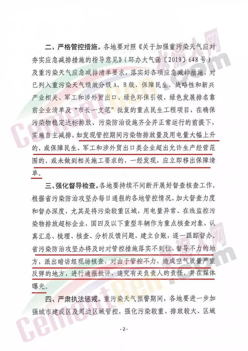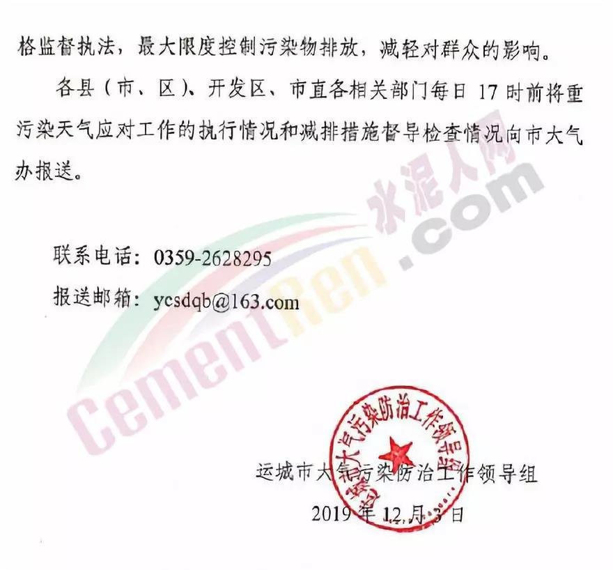 同期,河北的“水泥窩”唐山市豐潤區(qū)發(fā)布《12月份唐山市大氣污染防治強(qiáng)化管控》通知。要求水泥企業(yè)從12月1日0時至12月31日24時實(shí)施大氣污染強(qiáng)化管控,其中完成超低排放改造且通過市生態(tài)環(huán)境局驗(yàn)收的金隅冀東唐山分公司、金隅冀東灤州公司,、啟新水泥、三友水泥,泓泰水泥和燕東水泥六家企業(yè)不限產(chǎn)。釆暖季保供暖的飛龍水泥、圣龍水泥、六九水泥維持60%生產(chǎn)負(fù)荷生產(chǎn)。承擔(dān)處置污泥和生活垃圾的耀東水泥、磬石水泥、燕南水泥三家水泥企業(yè)按照實(shí)際處置量保持最低負(fù)荷生產(chǎn)。其他水泥企業(yè),限產(chǎn)比例不低于50%?! ∷喾勰フ酒髽I(yè)完成行業(yè)環(huán)保深度治理,通過市生態(tài)環(huán)境部門驗(yàn)收后,準(zhǔn)予連續(xù)生產(chǎn)16天。