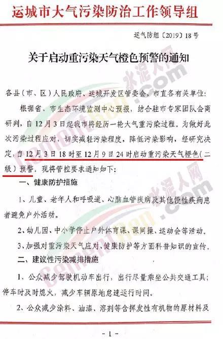 運(yùn)城市,自12月3日18時至12月9日24時啟動重污染天氣橙色(二級)預(yù)警。
