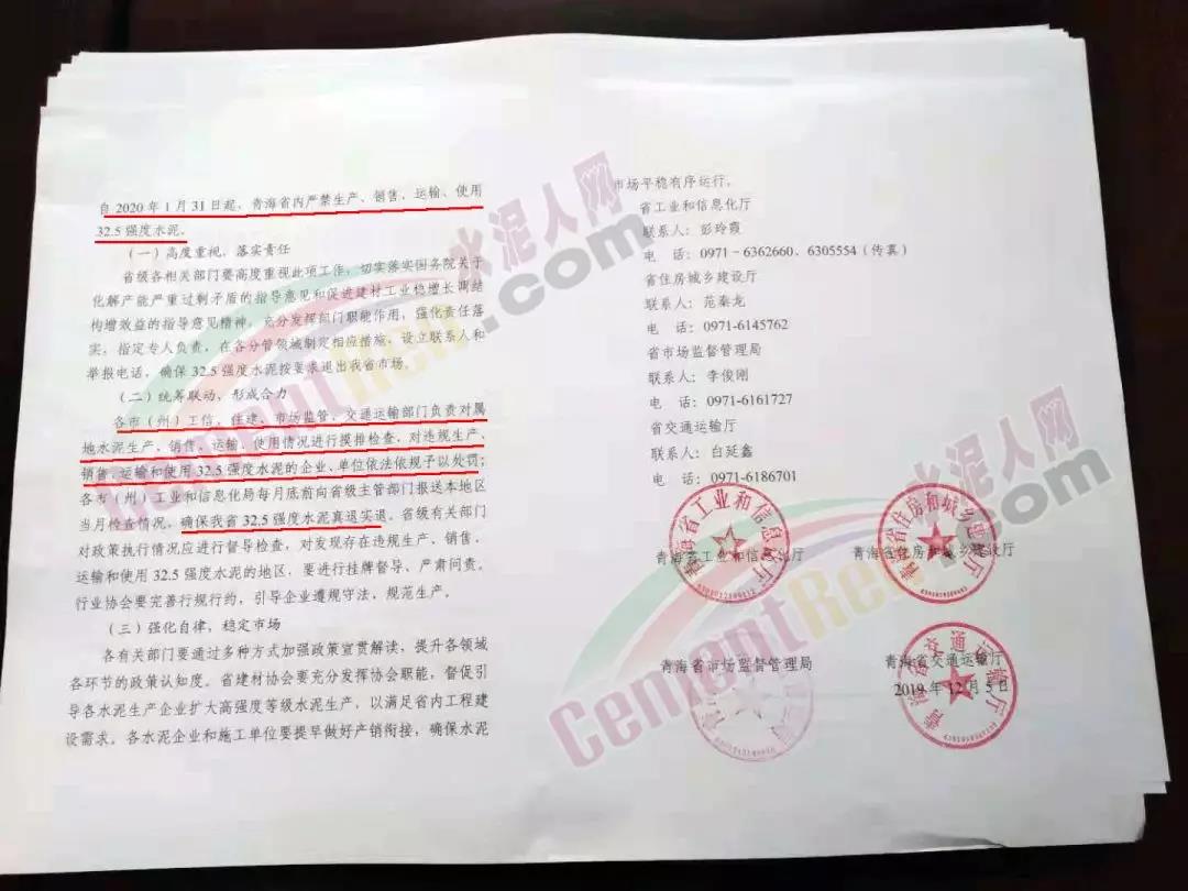 為進(jìn)一步推動(dòng)我省水泥行業(yè)健康有序發(fā)展,化解水泥過剩產(chǎn)能,按照《國務(wù)院關(guān)于化解產(chǎn)能嚴(yán)重過剩矛盾的指導(dǎo)意見》(國發(fā)(2013]41號(hào))、《關(guān)于促進(jìn)建材工業(yè)穩(wěn)增長調(diào)結(jié)構(gòu)增效益的指導(dǎo)意見》(國辦發(fā)[2016]34號(hào))要求,結(jié)合我省實(shí)際,經(jīng)研究,自2020年1月31日起,青海省內(nèi)嚴(yán)禁生產(chǎn)、銷售、運(yùn)輸、使用32.5強(qiáng)度水泥。