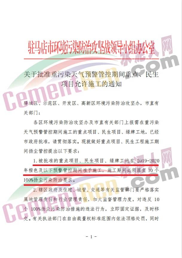 12月6日,河南省駐馬店市環(huán)境污染防治攻堅戰(zhàn)領(lǐng)導(dǎo)小組辦公室發(fā)布了《關(guān)于批準(zhǔn)重污染天氣預(yù)警管控期間重點、民生項目允許施工的通知》稱,根據(jù)各區(qū)環(huán)境污染防治攻堅辦及市有關(guān)部門報需在重污染天氣預(yù)警管控期間施工的重點項目、民生項目、綠牌工地,已經(jīng)在市政府批準(zhǔn),請貫徹落實。具體重點項目、民生工程施工期間揚(yáng)塵管控要求。文件全文如下: