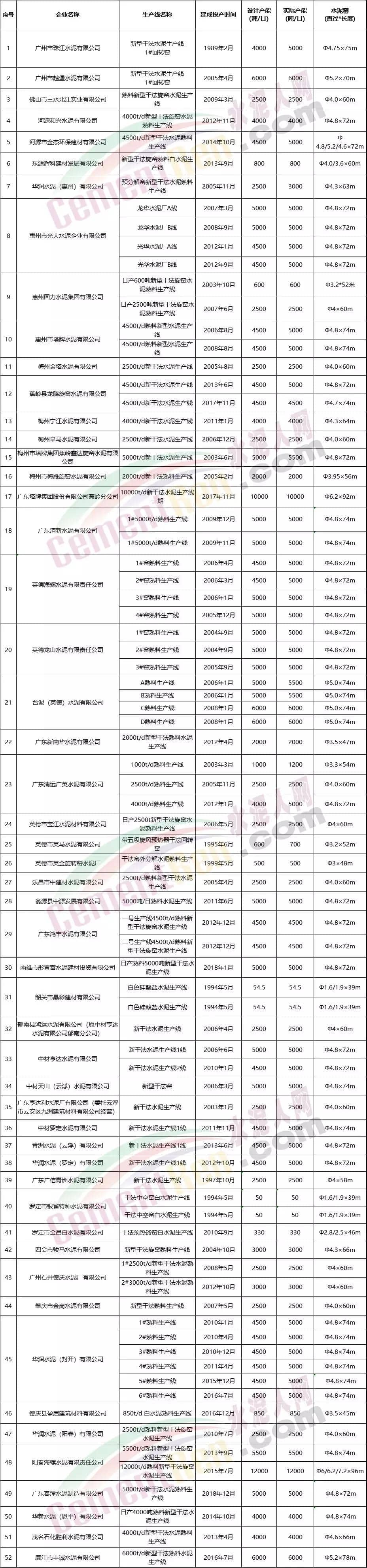 6 廣東春潭水泥制造有限公司5000t/d新干法水泥熟料生產(chǎn)線哦2018年12月新投產(chǎn)生產(chǎn)線,關(guān)鍵設(shè)備 Φ4.8×72m回轉(zhuǎn)窯。產(chǎn)能置換方案詳見工信部公告(2015年第21號)。