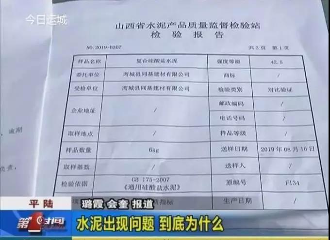 芮城縣同基建材有限公司銷售部經(jīng)理 高永振:(姜女士家)水泥受潮凝固,凝固以后,他把水泥塊解出來,這是主家說的,把剩下的水泥使用了,水泥這個(gè)東西特性比較敏感,它一受潮就凝固,強(qiáng)度就下降了;地面起沙那個(gè)(張先生)是拉了110多噸,只用了80噸,用量上差別就很多,我懷疑果庫這邊也存在水泥用量偏少造成的。