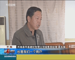 芮城縣同基建材有限公司銷售部經(jīng)理 高永振:我們認(rèn)為老百姓蓋一次房不容易,也是我們的一個(gè)用戶,從道義上適當(dāng)給用戶補(bǔ)一點(diǎn)水泥,使他降低些損失。