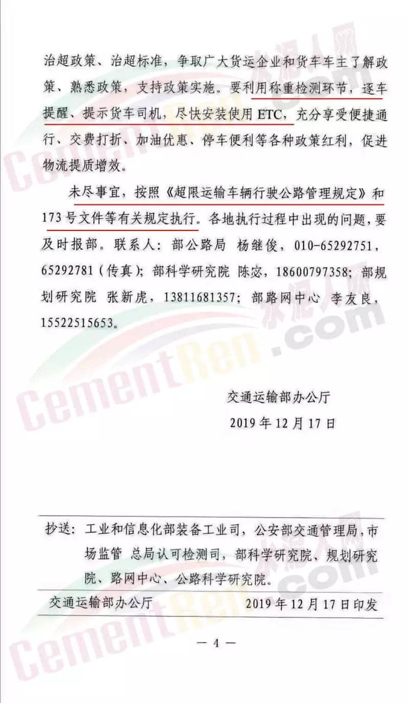 但是,因部分地區(qū)出現(xiàn)了治超標(biāo)準(zhǔn)執(zhí)行不統(tǒng)一等問題,令物流運(yùn)輸車司機(jī)無所適從,尤其是水泥運(yùn)輸車輛,舉個例子,總重36噸的四橋車在執(zhí)行地方標(biāo)準(zhǔn)的陜西上了高速,但進(jìn)入到執(zhí)行國家標(biāo)準(zhǔn)的甘肅后,標(biāo)載是31噸,要求卸貨至標(biāo)準(zhǔn)值,并接受處罰。對貨車司機(jī)來說損失就大了。不過,也有貨車司機(jī)表示,希望貨車的最高載重可以恢復(fù)55噸,各車型都恢復(fù)以前的限值,現(xiàn)在的制度大浪費(fèi)資源了,而且,貨車司機(jī)根本傷不起!前四后八的自卸車規(guī)定31噸,車自重就有18噸,只能拉13噸貨,跑一趟下來,還不夠油錢。 12月17日,交通運(yùn)輸部辦公廳發(fā)布特急文件《關(guān)于進(jìn)一步規(guī)范全國調(diào)整公路入口稱重檢測工作的通知》(交辦公路明電【2019】117號)(以下簡稱“《通知》”)。《通知》直指全國部分地區(qū)治超標(biāo)準(zhǔn)不統(tǒng)一的問題。為進(jìn)一步規(guī)范高速公路入口稱重檢測工作,切實(shí)維護(hù)公路貨運(yùn)企業(yè)合法權(quán)益,根據(jù)相關(guān)法律法規(guī)和規(guī)定,有關(guān)通知如下: