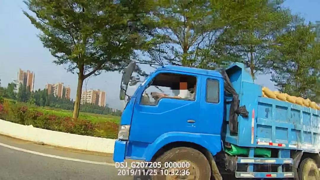 2019-12-09珠海交警消息:11月25日早上,高速公路交警在機(jī)場高速北往南乾務(wù)出口執(zhí)勤。上午10時(shí)30分,一輛桂KW1025號(hào)牌中型自卸貨車從北往南方向駛來,車輪半癟,似乎有些不堪重負(fù),交警吹哨子讓司機(jī)停車接受檢查。貨車司機(jī)戴著墨鏡,看了交警一眼,猛踩油門,“嗖”一聲駛過,順著出高速的匝道越開越快,左轉(zhuǎn)彎一溜煙就不見了。這么大塊頭跑這么快,交警攔也不停,不知有什么貓膩。