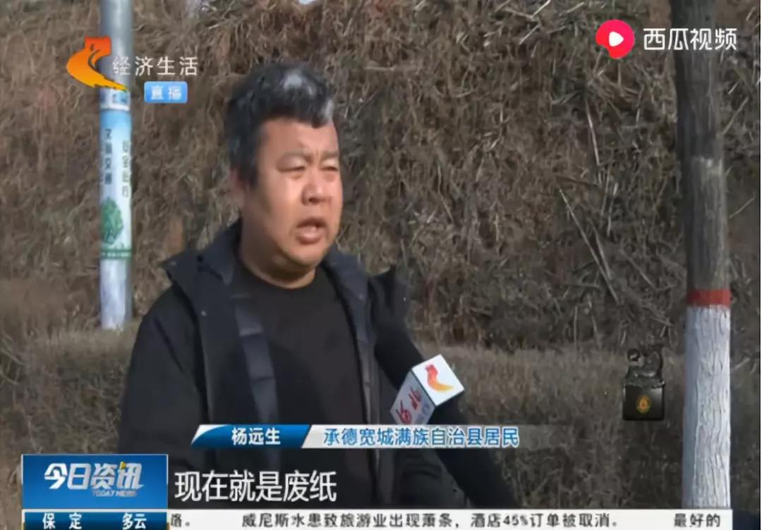 除此之外,承德寬城滿族自治縣居民何相林先生也是這種情況稱,私下統(tǒng)計(jì)著好像還有兩千多噸,現(xiàn)在是天寶房地產(chǎn)跟水泥廠,他們兩家扯皮,所以造成我們拿不到貨。