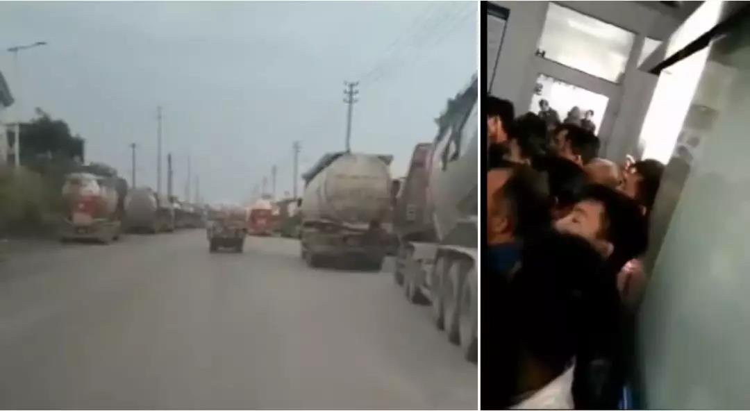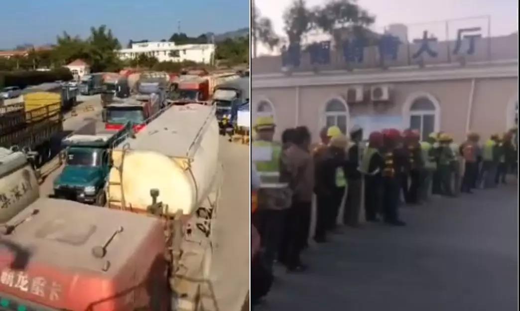 圖:海螺水泥廠區(qū)外車排隊(duì),廠區(qū)內(nèi)人排隊(duì)