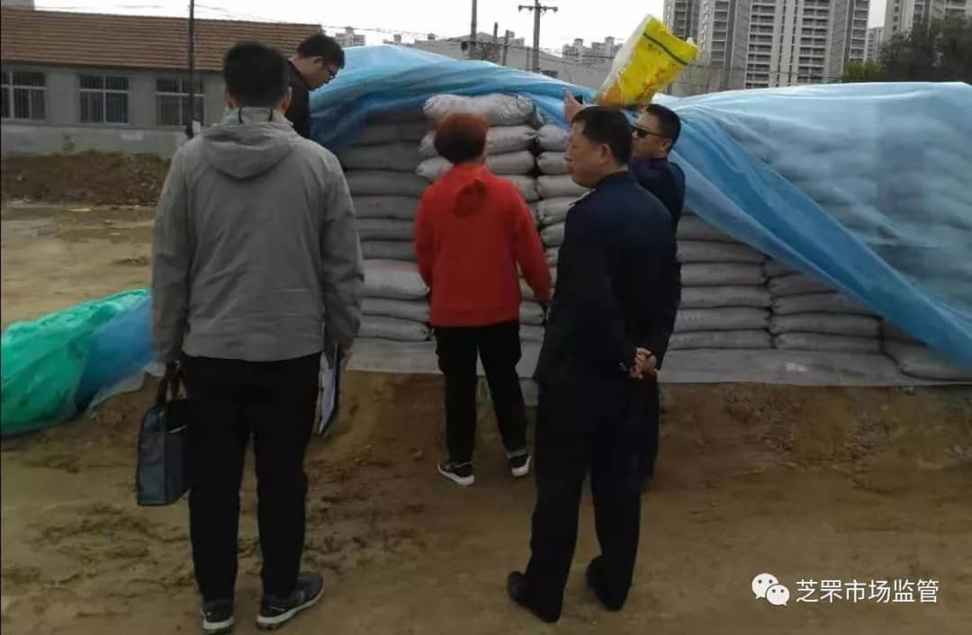 前期摸底完成后,知識產(chǎn)權(quán)和反不正當(dāng)競爭科同志配合黃務(wù)市場監(jiān)管所執(zhí)法人員,立刻聯(lián)系福山公司的質(zhì)量管理人員來現(xiàn)場進(jìn)行取證調(diào)查,經(jīng)查實,該場地內(nèi)共有兩處水泥貯存點,現(xiàn)場辨認(rèn)、清點發(fā)現(xiàn),其中一處系正品水泥,另外一處系假冒“盾石”牌袋裝水泥。