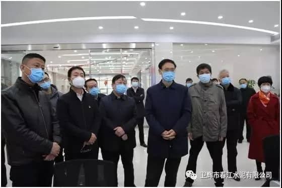 ▲新鄉(xiāng)市委書記張國偉一行在水泥公司中控室聽取裴春亮?xí)洀?fù)工復(fù)產(chǎn)情況匯報