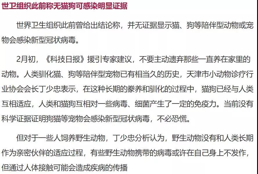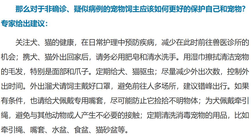 另據(jù)香港特區(qū)政府4日晚間發(fā)布的新聞公報(bào)消息,香港漁護(hù)署發(fā)言人還強(qiáng)調(diào),現(xiàn)時(shí)沒有證據(jù)顯示寵物會(huì)傳播新冠病毒,或會(huì)因此生病。除保持良好衛(wèi)生習(xí)慣外,寵物畜養(yǎng)人毋須過份憂慮。在任何情況下,絕不應(yīng)棄養(yǎng)寵物。