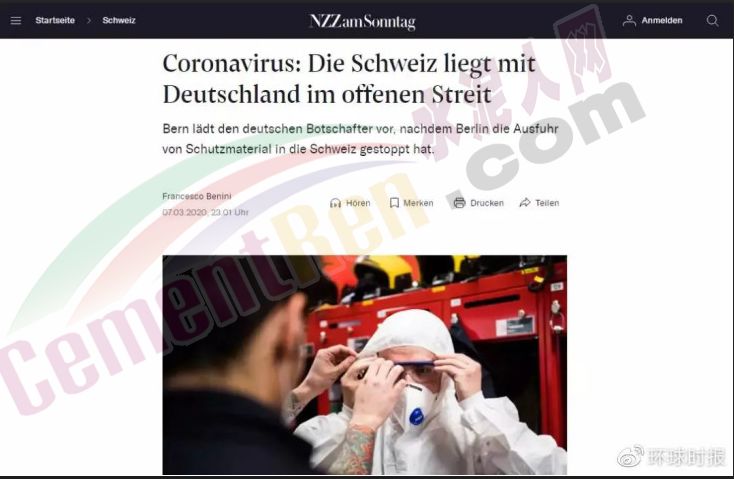 由于防疫物資緊張,海外版“攔截口罩”劇情上演。據(jù)《新蘇黎世報》等媒體3月7日報道,近日,因為德國限制口罩及其他防疫物資出口,德國海關(guān)上周攔截了24萬只瑞士進口的防護口罩,導(dǎo)致同樣急需物資抗擊疫情的瑞士大為不滿。數(shù)據(jù)顯示,瑞士國內(nèi)目前已確診超200例新冠肺炎病例,國內(nèi)醫(yī)療物資告急。