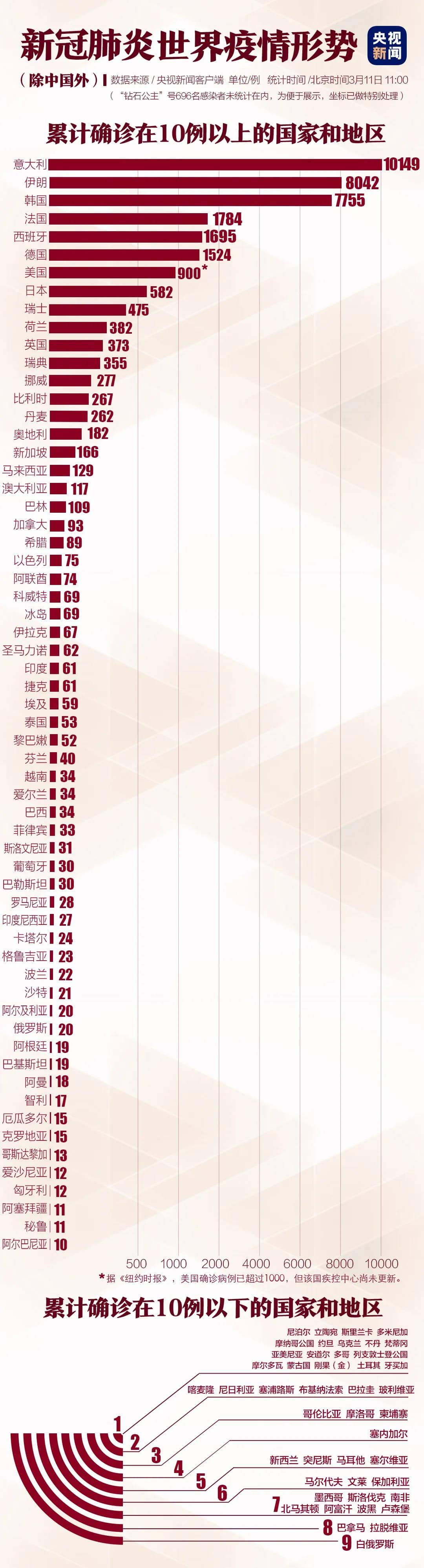 據(jù)世界衛(wèi)生組織10日公布的數(shù)據(jù)顯示,全球新冠肺炎確診人數(shù)持續(xù)上升,中國以外新冠肺炎確診病例超32000例。