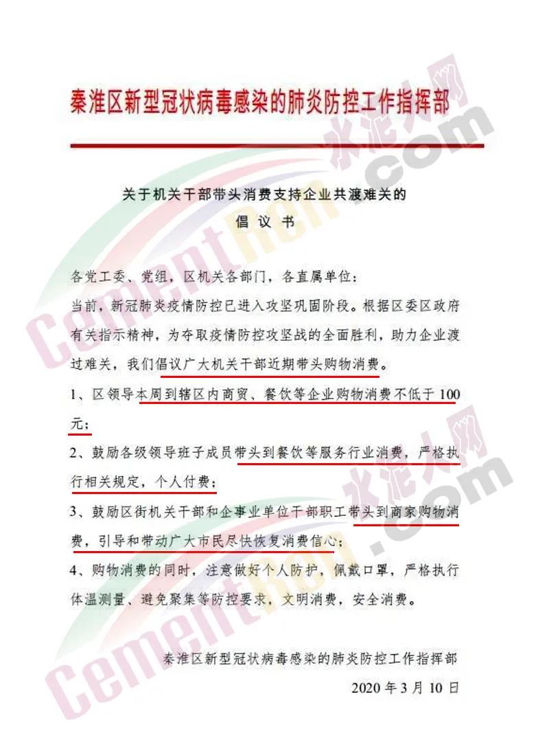 3月11日,南京市秦淮區(qū)新型冠狀病毒感染的肺炎防控工作指揮部發(fā)布《關(guān)于機(jī)關(guān)干部帶頭消費(fèi)支持企業(yè)渡過(guò)難關(guān)的倡議書》,向全區(qū)機(jī)關(guān)干部發(fā)出倡議帶頭購(gòu)物消費(fèi)。