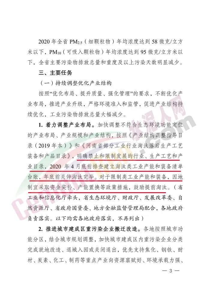 1、2020年4月底前排查建立淘汰類工業(yè)產能和裝備清單臺賬,年底前關停淘汰完畢。對于限制類工業(yè)產能和裝備,因地制宜采取資金獎補、產能置換等政策措施,鼓勵提前淘汰。