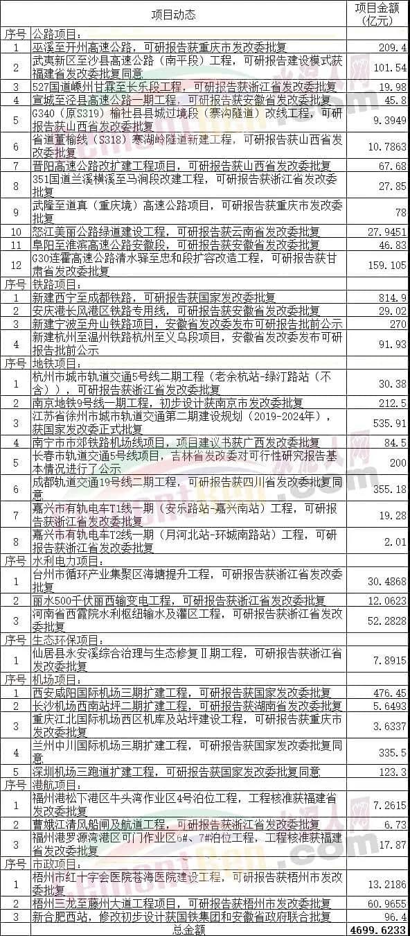 據(jù)統(tǒng)計(jì),今年前兩個(gè)月,國(guó)家及省市級(jí)發(fā)改委共批復(fù)了約 39 項(xiàng)重大工程項(xiàng)目的可行性研究報(bào)告或項(xiàng)目合核準(zhǔn)建議書(shū)等,總項(xiàng)目投資額近 4700 億元。其中,交通基建類項(xiàng)目總投資額近4427億元。