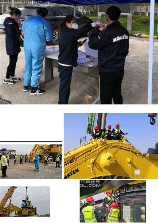 無論是在準(zhǔn)備工作階段,還是在設(shè)備的組裝過程中,小松(中國)和代理店人員遵循小松集團(tuán)“S(安全與健康)→L(遵紀(jì)守法)→Q(質(zhì)量)→D(確保交貨期)→C(成本管控)”工作方針,始終將安全與健康放在首位??紤]到當(dāng)前仍處在抗疫關(guān)鍵時期,全體參加人員按照小松(中國)關(guān)于“緊急時期出勤指引”要求,結(jié)合當(dāng)?shù)匾咔榈膶嶋H情況,制定了包括住宿、飲食、測溫、消毒等內(nèi)容的嚴(yán)格管理措施。組裝過程中全體人員全程佩戴口罩,并盡最大可能保持人與人之間的距離,現(xiàn)場聯(lián)絡(luò)、吊車指揮等均采用對講機進(jìn)行。