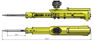 其二為國際著名鑿巖設備公司, 法國蒙特貝公司的液壓破碎錘,和挖掘機配套使用的鑿巖鉆機具, 見圖