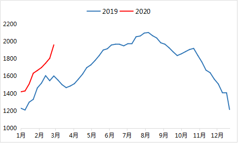 截至3月4日,百年建筑網(wǎng)調(diào)研全國500家混凝土攪拌站復(fù)工率72%,復(fù)產(chǎn)率為48%,調(diào)研當(dāng)周發(fā)貨量為48.6萬方,雖然環(huán)比上周大幅增長66.4%,但也僅是正常水平的一成,由于水泥是混凝土生產(chǎn)中必不可少的原材料,而混凝土是即產(chǎn)即銷的產(chǎn)品,因此其發(fā)貨量將直接反應(yīng)到水泥需求上,目前攪拌站整體發(fā)貨量偏低,由此可以看出攪拌站對(duì)水泥大量采購還有待時(shí)日。