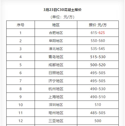 近期混凝土企業(yè)復(fù)工率大幅提升,但因下游需求不足,大部分地區(qū)企業(yè)面臨“已復(fù)工,沒活干”的窘迫境地。截止3月20日,全國34個(gè)主要城市C30現(xiàn)款、非泵均價(jià)449元/方,其中福州下跌10元/方。昨日(3月23日),多個(gè)區(qū)域混凝土價(jià)格持續(xù)震蕩下行,市場需求表現(xiàn)不佳。