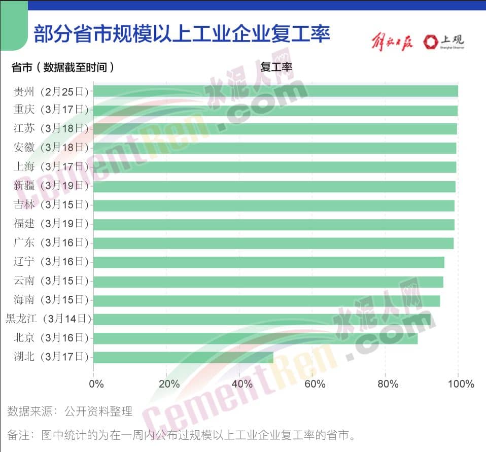 疫情的好轉(zhuǎn),也意味著更多的企業(yè)逐漸復(fù)工,走上正常運(yùn)營(yíng)的軌道。據(jù)公開(kāi)數(shù)據(jù),全國(guó)規(guī)模以上工業(yè)企業(yè)復(fù)工率提高較快,多個(gè)省份的復(fù)工率已經(jīng)在99%以上。其中,貴州在2月25日就已經(jīng)實(shí)現(xiàn)了100%復(fù)工,重慶以99.9%的復(fù)工率接近完全復(fù)工,上海的復(fù)工率也達(dá)到了99.5%。大連市1894戶規(guī)上工業(yè)企業(yè),已復(fù)工1838戶,復(fù)工率97%。
